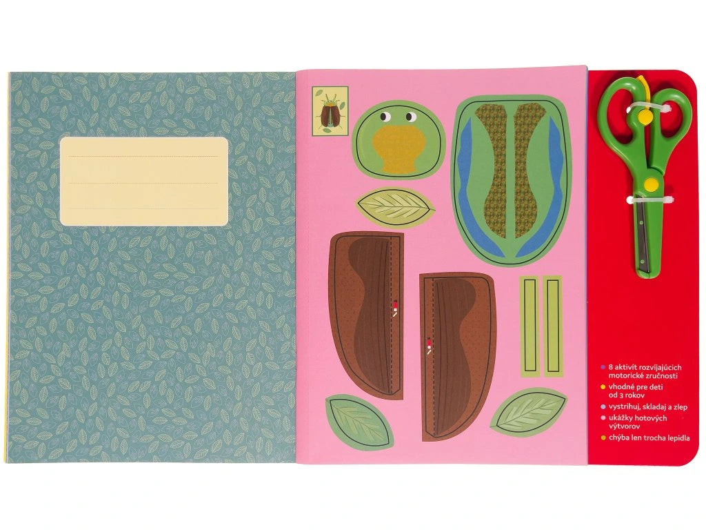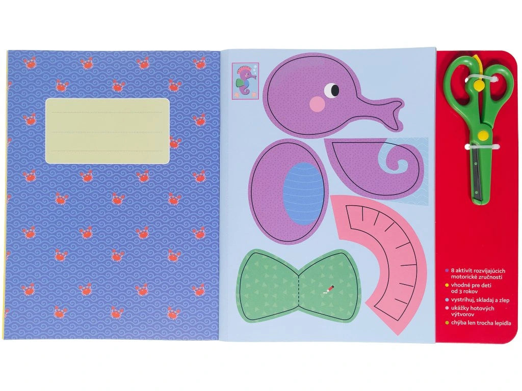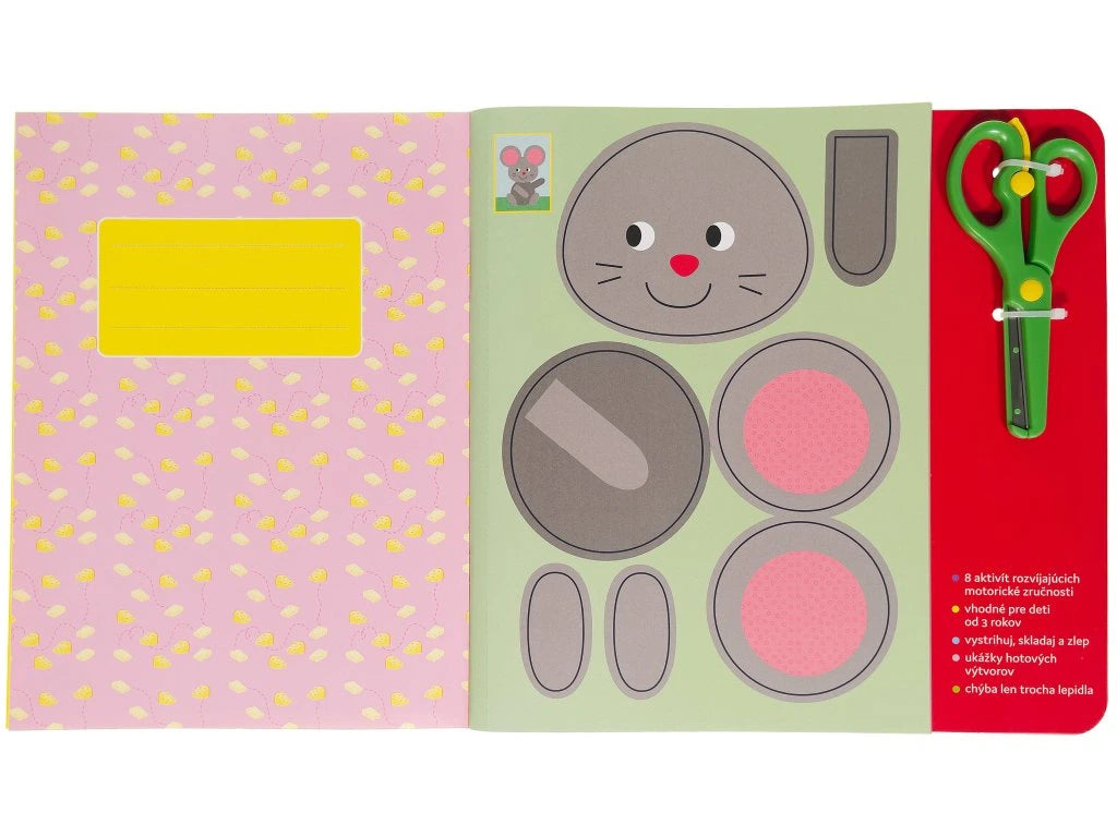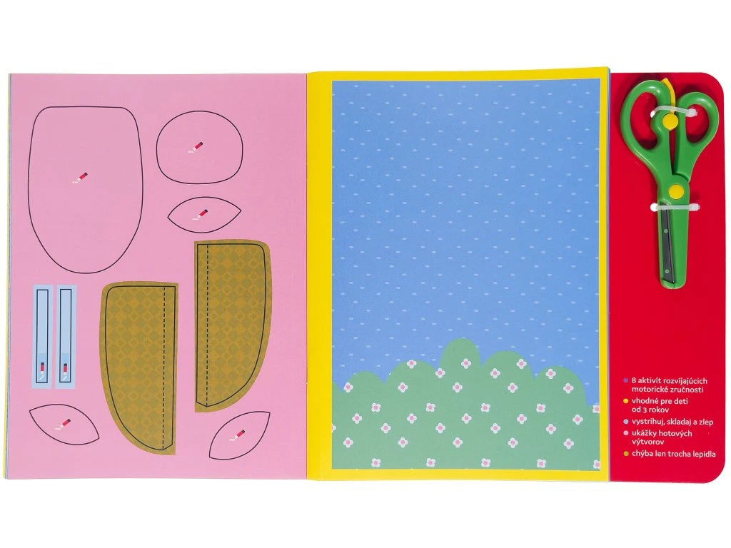 S týmto skvelým pracovným zošitom sa deti od 3 rokov naučia strihať, skladať a lepiť jednoduché tvary, z ktorých krok za krokom vytvoria trojrozmerné obrázky zvierat. Zoznámia sa s nožnicami, naučia sa ich držať a správne používať a ešte si pritom precvičia jemnú motoriku. Súčasťou zošita sú detské nožnice a vnútri nájdete všetok potrebný papierový materiál. Stačí si prizvať na pomoc lepidlo a zábavná tvorba sa môže začať!