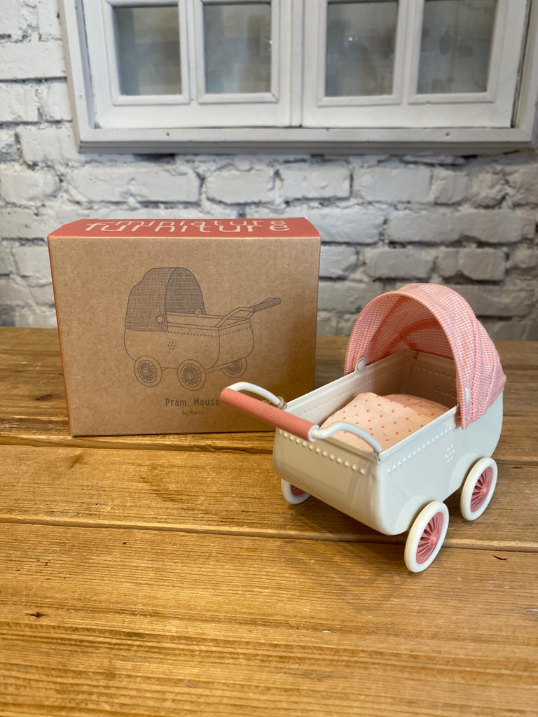 Štýlový kočík za ktorým sa obzrie asi každá myška z Maileg sveta. Vyraziť si na prechádzku s týmto krásnym kúskom je priam pôžitok či už pre detičky alebo malé myšičky. Kovová konštrukcia, vintage vzhľad, textilná podložka s jemným vzorom dodá šmrnc celému kočiariku, už len si premyslieť kam sa myšia rodinka vyberie na prechádzku.