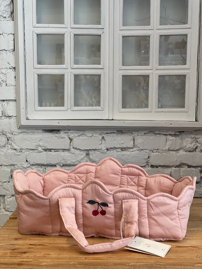 Praktický košík pre bábiky, ktorý poslúži ako postieľka alebo na cesty. Vyrobený zo 100% bio bavlny.