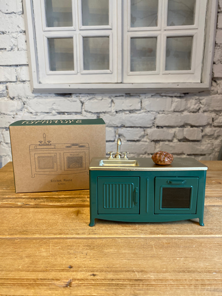 Kovová kuchynka prepracovaná do detailu v nádhernom dizajne, v ktorej Maileg kamoši pripravia tie najlepšie dobrotky. CHlebík je súčasťou balenia, myška nie. :)