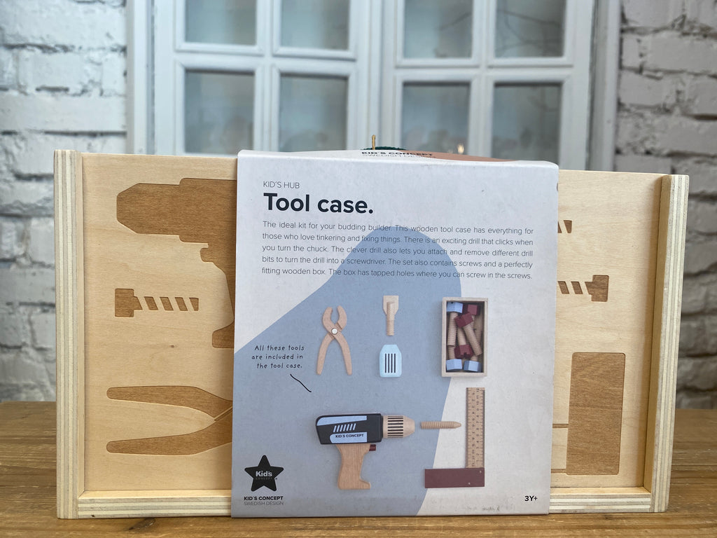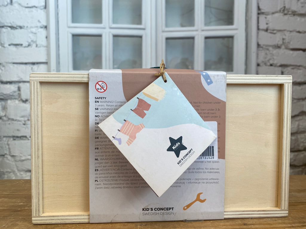 Drevený kufrík s náradím obsahuje všetko, čo váš malý remeselník potrebuje na opravy a montovanie.