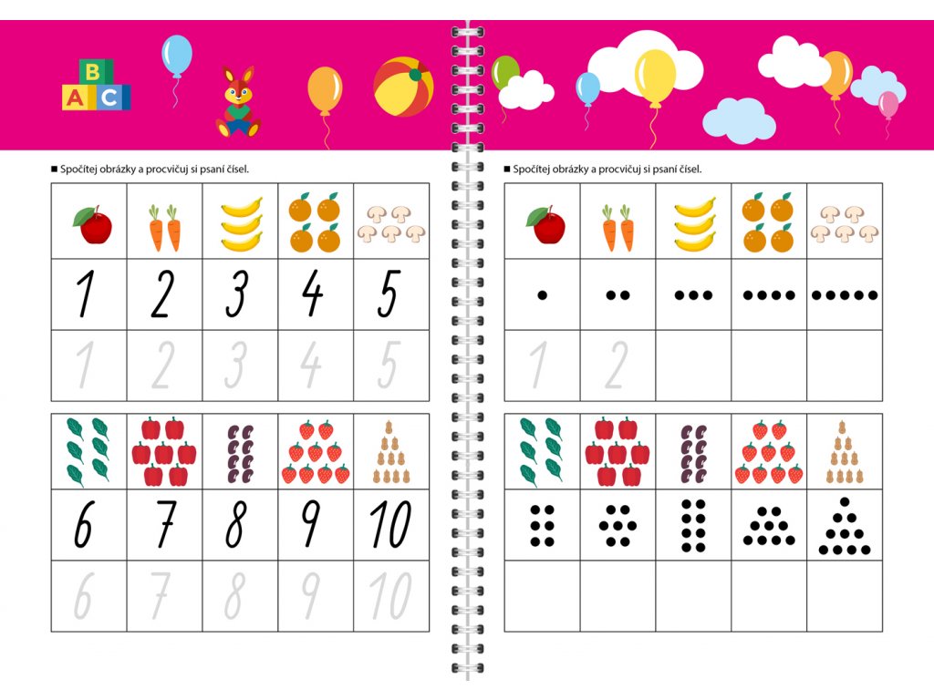 Táto knižka je ideálnou pomôckou pre nácvik správneho písania. Je určená pre stierateľnú fixku a dieťa s ňou môže pracovať metódou "napíš a zmaž", vďaka ktorej si bude opakovane precvičovať ako čiarky a vlnovky vedú k správnemu písaniu čísel, a následne aj čísel samotných. Stierateľná fixka sa dá zo stránok ľahko zmazať handričkou a precvičovanie môže začať nanovo! S touto pomôckou bude mať váš predškolák zdravo vytrénovanú ruku, pripravenú na písanie číslic, a zároveň si bude rozvíjať pozornosť, myslenie a fantáziu.