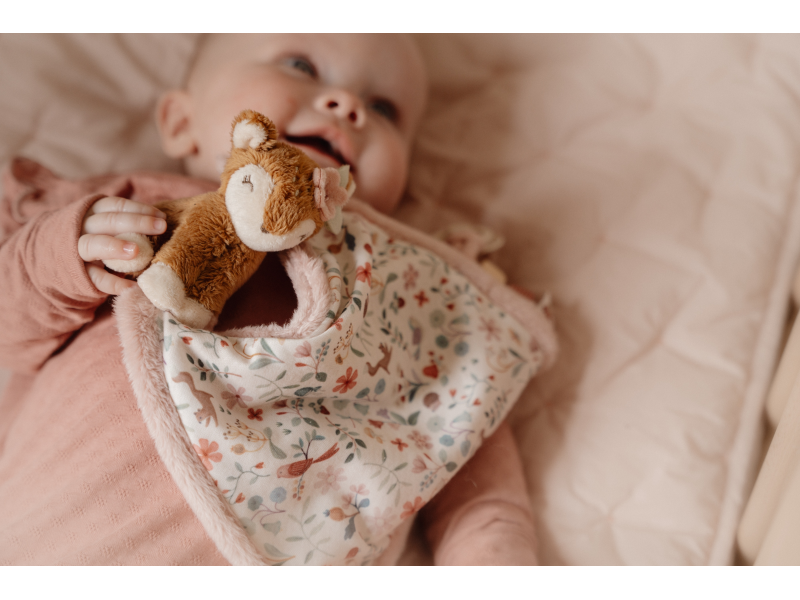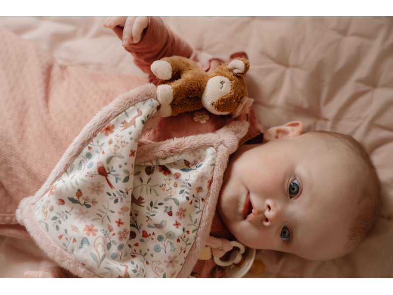 Plyšový maznáčik s nežnou srnkou a úchytom pre cumlík láka na hranie aj maznanie. Maznáčik je vyrobený z veľmi jemného a príjemného materiálu a je ideálny ako spoločník do postieľky pre pokojné zaspávanie.