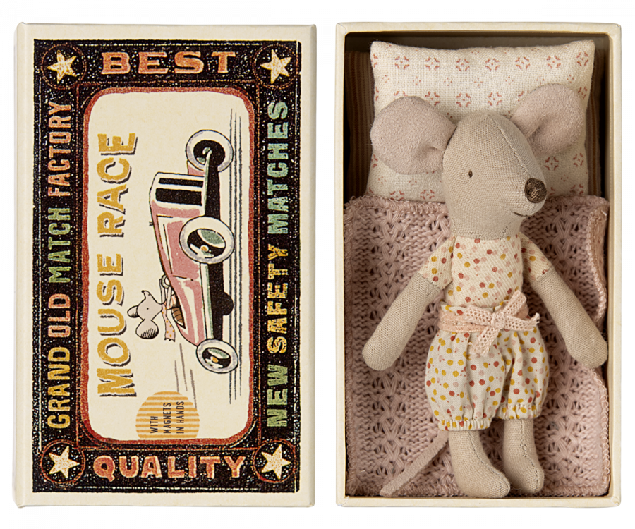 Kde bolo tam bolo, žila jedna myška, ktorá sa veľmi rada hrala a spinkala.Krásny domček zo zápalkovej krabičky mala, kde si rada sladké sníčky snívala.