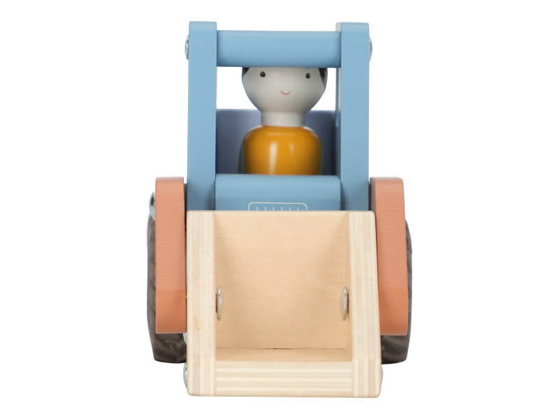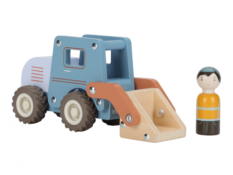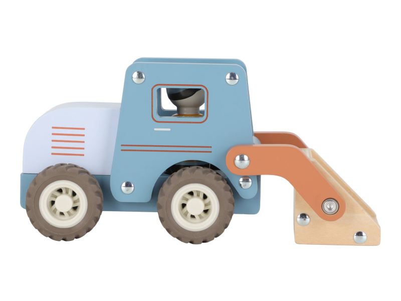 Súčasťou hračky je drevená figúrka stavbára, ktorá rozširuje možnosti hry a podporuje predstavivosť. Nakladač môžete kombinovať s ďalšími stavebnými vozidlami – napríklad s autožeriavom, miešačkou alebo sklápačkou – pre kompletné stavebné dobrodružstvo.