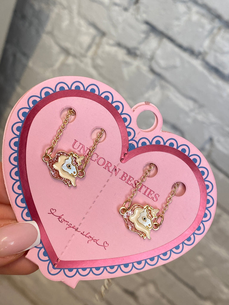 Sada dvoch nastaviteľných náramkov pre dievčatá s jednorožcom Jeden pre teba a jeden pre kamku či mamku. Ideálny darček pre blízku osobu. Bez obsahu niklu. Materiály: 30% železo, 37% zinok, 30% polyresin, 3% povlak (meď+cín). Vhodné od 3r+. POZOR! NEBEZPEČENSTVO UDUSENIA. Malé časti. Nevhodné pre deti do 36 mesiacov.