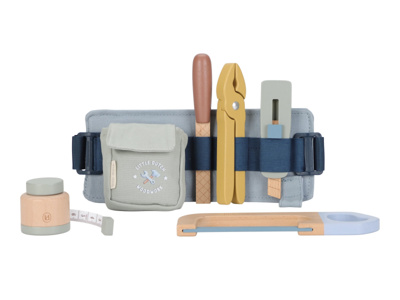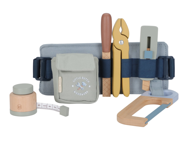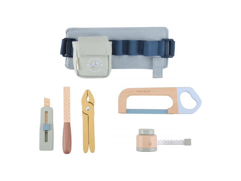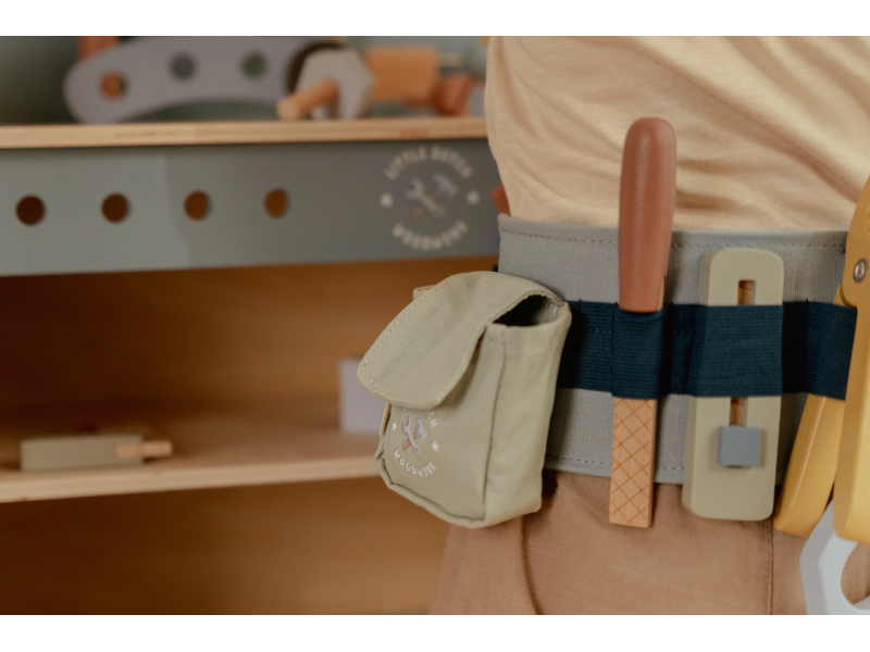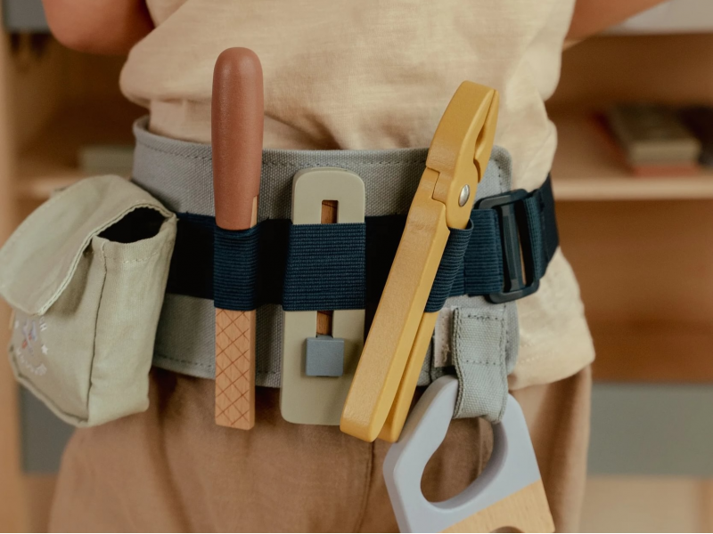 Vďaka pásku s úchytmi na náradie bude mať váš malý opravár všetky svoje nástroje vždy po ruke. Svoje miesto na opasku má meter, kliešte, rezáčik na krabice, pílka aj pilník.