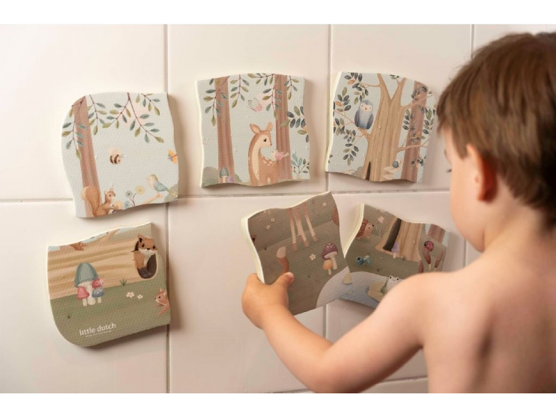 Penové 6-dielne puzzle do vane s natlačenými motívmi zo života v lese zabaví vaše deti pri kúpaní vo vani.