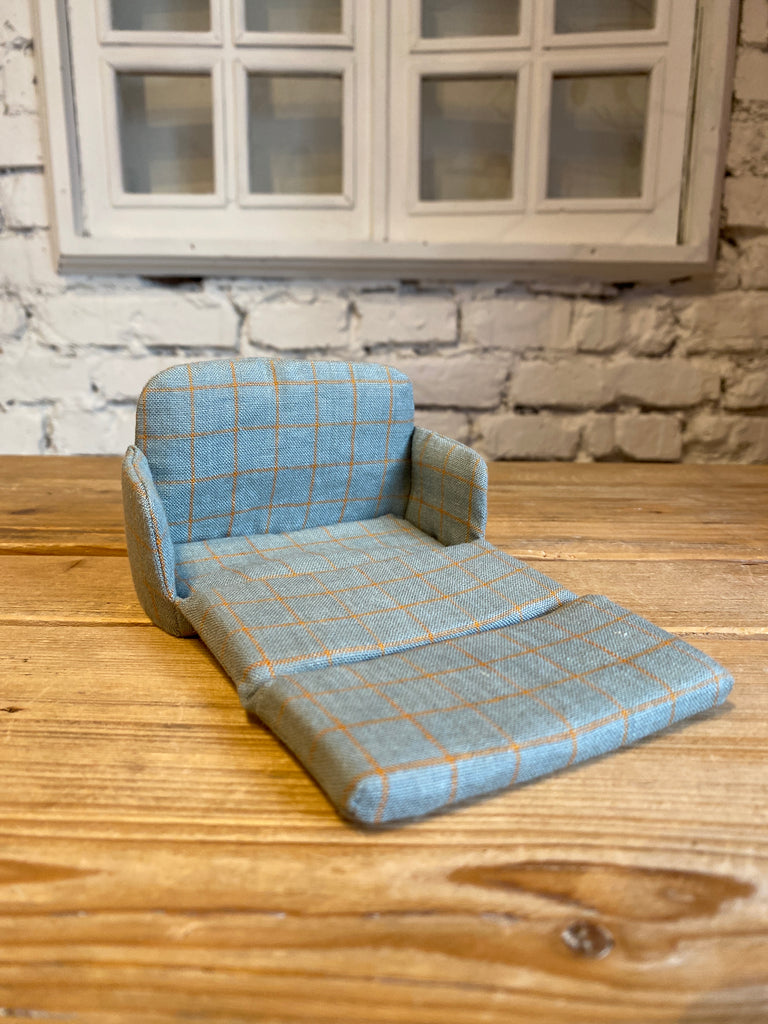 ROZKLADACIA SEDAČKA modrá károvaná - do vypredania