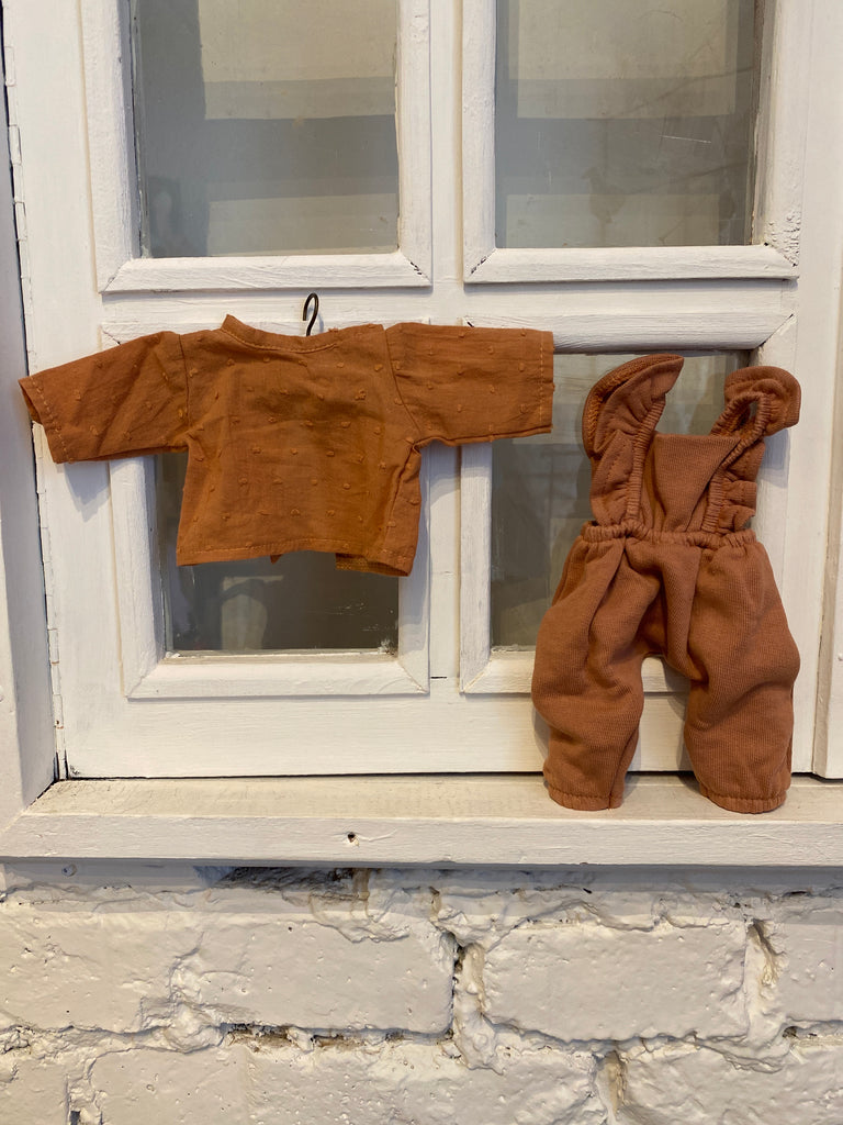 SET OBLEČENIA MINIKANE - OVERAL S BLÚZKOU tehlová