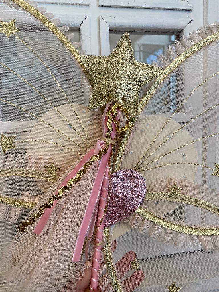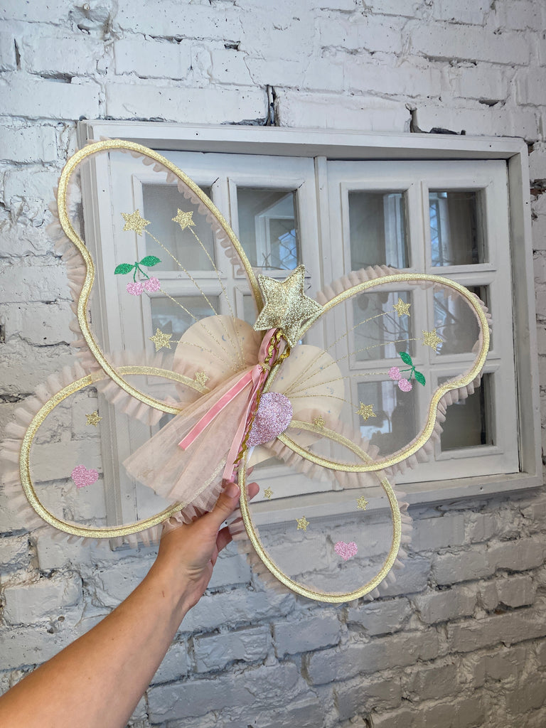 Krásne krídla pre malé víly. Zdobené jemnými flitrami ktoré sa na svetle budú pekne ligotať. Súčasťou balenia je aj palička.