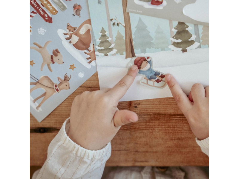 Užite si s vašim dieťaťom chvíle plné radosti a kreatívneho tvorenia počas magického adventného obdobia! Kreatívna sada Little Dutch obsahuje viac ako 150 vianočných samolepiek a 8 pohľadníc, ktoré môžete vyzdobiť podľa vlastnej fantázie a vytvoriť tak originálny vianočný darček alebo dekoráciu.