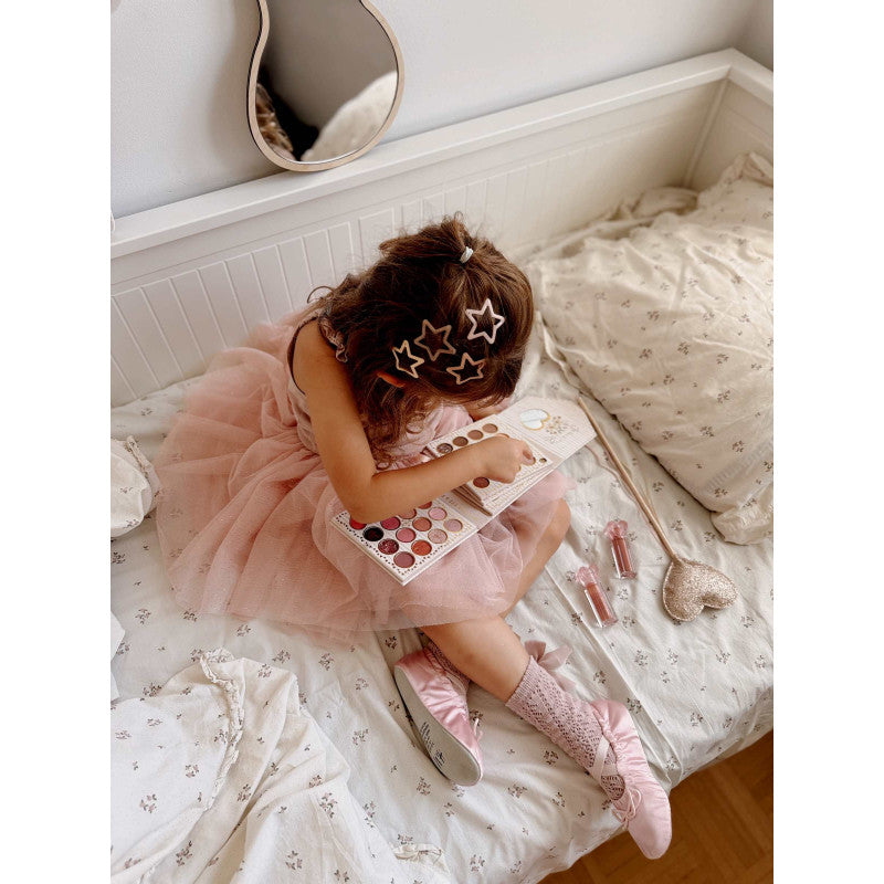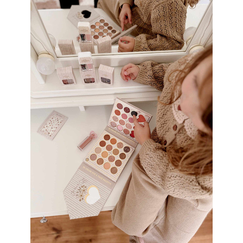 S touto nádhernou detskou make-up paletou Mon Chéri plnou 50 jemných nude a zemito ladených odtieňov na oči a tvár si každé dievčatko môže hravo vyskúšať prvé líčenie a naučiť sa kombinovať farby prirodzene a nežne.