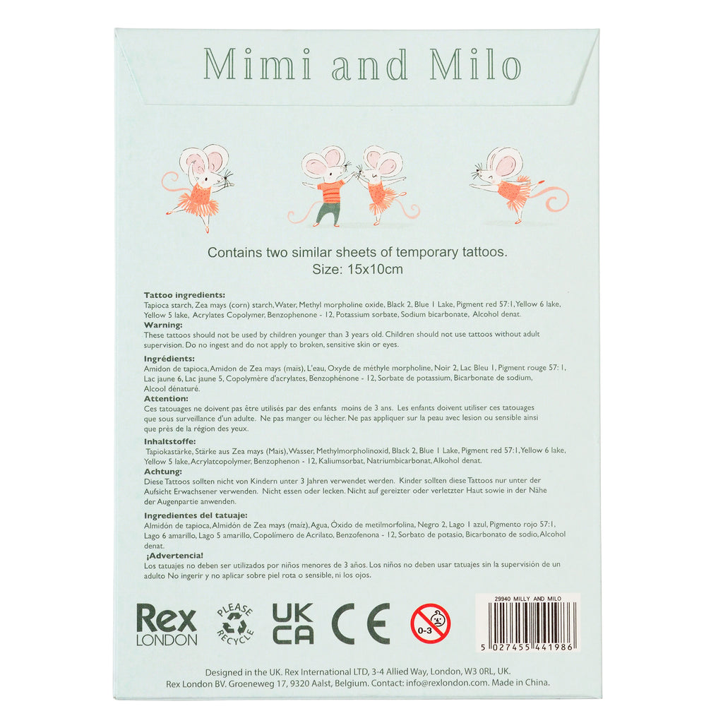 Tieto dočasné tetovačky pre deti s motívom Mimi a Milo Mouse sú veselé, hravé a ideálne pre malých fanúšikov rozkošných myšiek 🐭