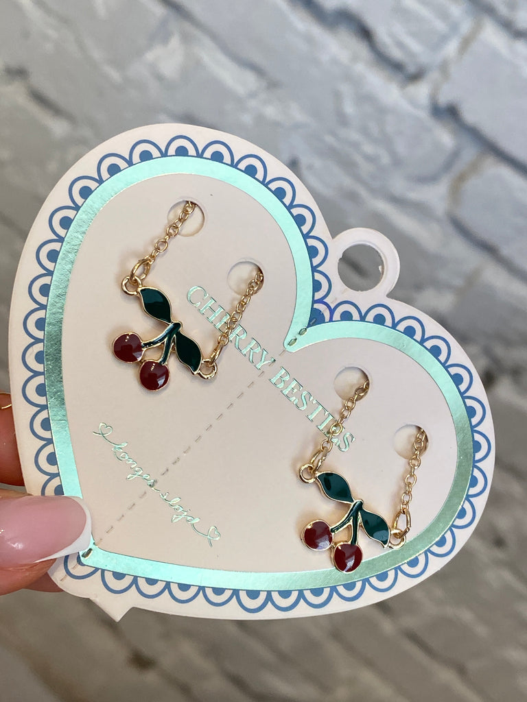Sada dvoch nastaviteľných čerešňových náramkov. Jeden pre teba a jeden pre kamku či mamku. Ideálny darček pre blízku osobu. Bez obsahu niklu. Materiály: 30% železo, 37% zinok, 30% polyresin, 3% povlak (meď+cín). Vhodné od 3r+. POZOR! NEBEZPEČENSTVO UDUSENIA. Malé časti. Nevhodné pre deti do 36 mesiacov.