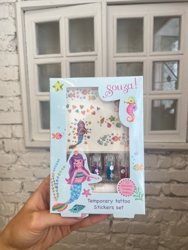 TRBLIETAVÉ tetovanie si po aplikácii dieťatko môže dozdobiť priloženými flitrami v 3 rôznych farbách. Filtre sa na pokožku lepia pomocou lepidla, ktoré je súčasťou balenia, a ktoré môžete poznať aj z predošlých tetovacích sád od značky Souza.