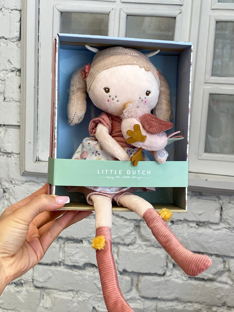 Nežná plyšová bábika Anna z mäkkého jemného materiálu je oblečená do krásnych kvetovaných šiat. Bábika drží v ruke malého plyšového vtáčika. Je vhodná na hranie aj maznanie a bude sa s ňou aj krásne zaspávať!