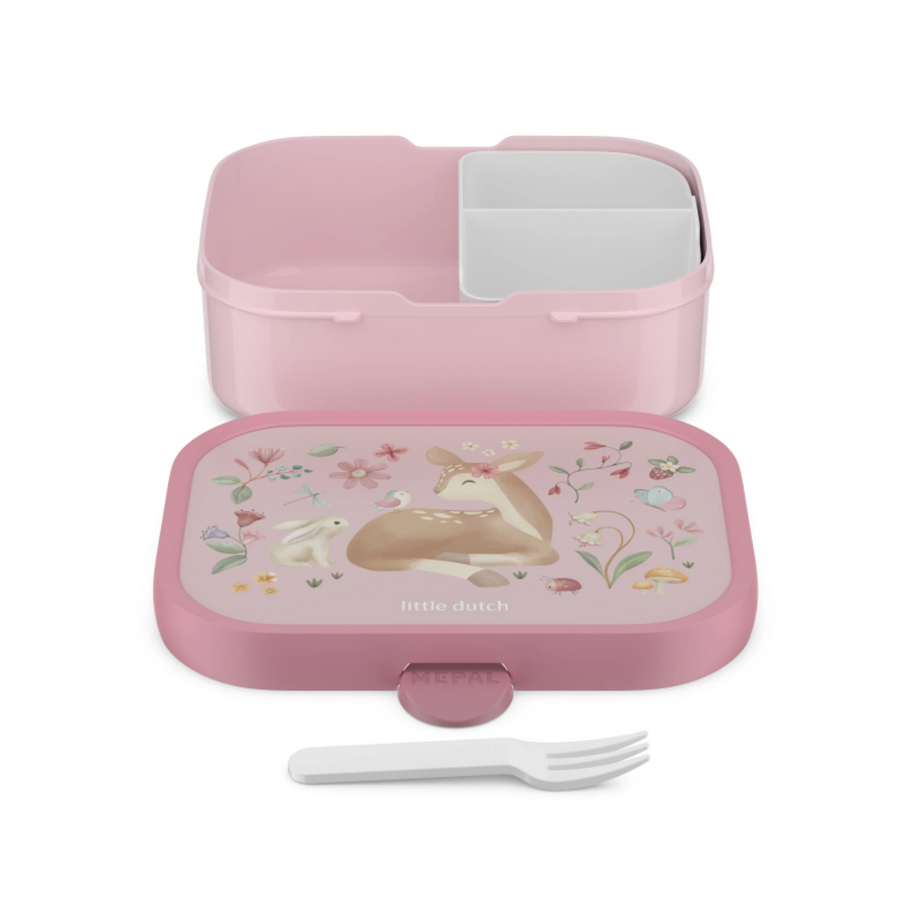 Praktický desiatový box ponúka možnosť rozdelenia na tri priehradky na oddelenie jednotlivých častí uloženej desiaty. Súčasťou boxu je aj malá vidlička, ktorá je ideálna na napichovanie kúskov ovocia či zeleniny. Zacvakávací uzáver je zárukou bezpečného uzavretia obsahu boxu.