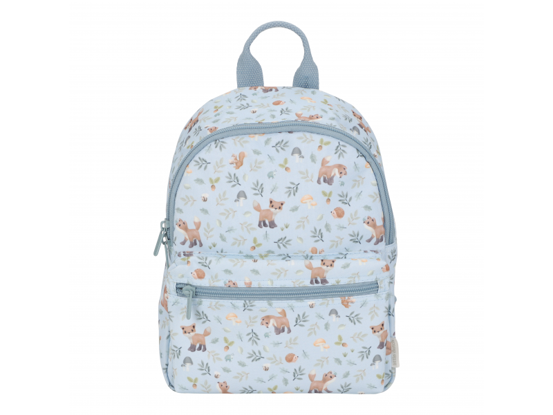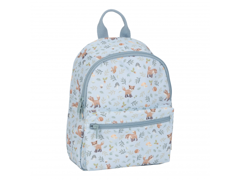 Rozkošný detský batoh potlačený obrázkami zvieratiek a motívmi zo života v lese je ideálnym doplnkom na výlety do prírody i prechádzky mestom. Batoh má nastaviteľné ramenné popruhy a hrudný pás na príjemné nosenie. Držadlo umožňuje prenášanie v ruke. Batoh je vybavený vonkajším vreckom na zips na uloženie drobností a vnútorný priestor s vreckom, elastickým držiakom na pitie a menovkou.