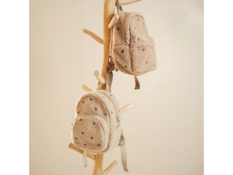 Rozkošný detský batoh z mäkkého plyšového materiálu s kvetinovou výšivkou je ideálnym doplnkom na výlety do prírody i prechádzky mestom. Batoh má nastaviteľné ramenné popruhy a hrudný pás na príjemné nosenie. Držadlo umožňuje prenášanie v ruke. Batoh je vybavený vonkajším vreckom na zips na uloženie drobností a vnútorný priestor s vreckom, elastickým držiakom na pitie a menovkou.
