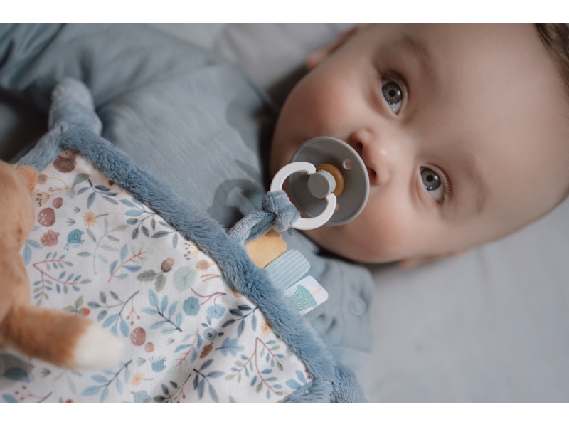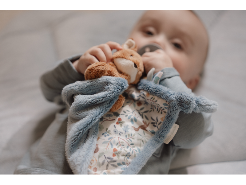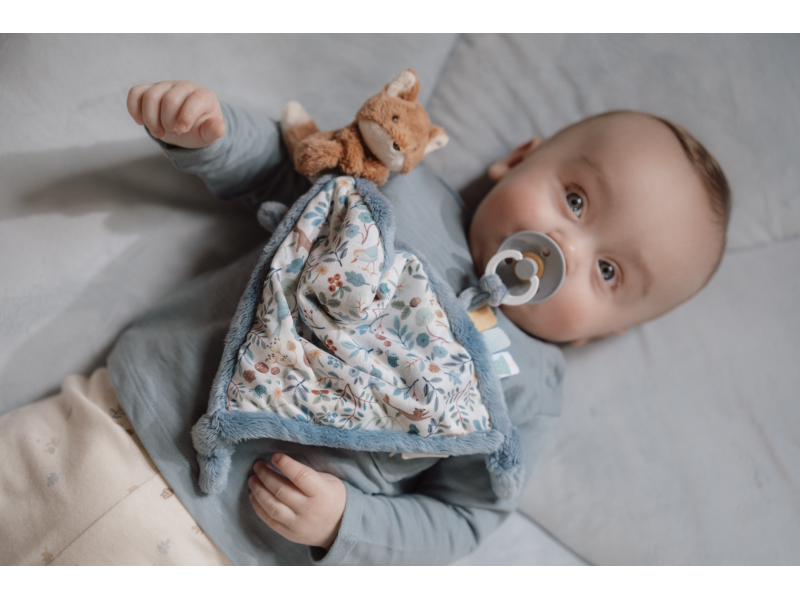 Plyšový maznáčik s rozkošnou líškou a úchytom pre cumlík láka na hranie aj maznanie. Maznáčik je vyrobený z veľmi jemného a príjemného materiálu a je ideálny ako spoločník do postieľky pre pokojné zaspávanie.
