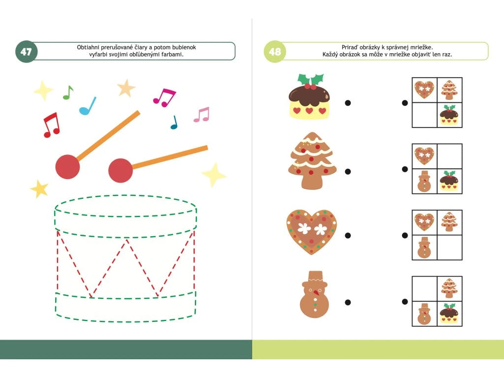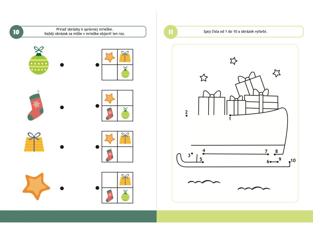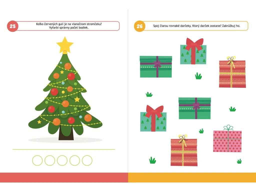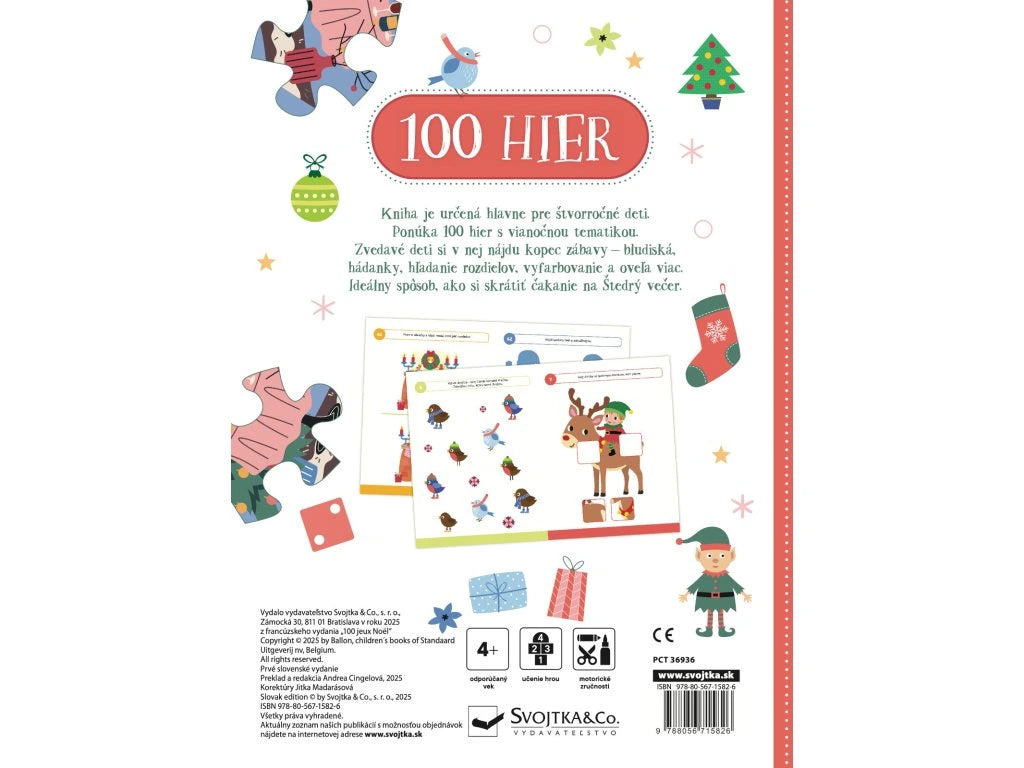 Kniha je plná krátkych hier s vianočnou tematikou, pri ktorých riešení sa deti zabavia naozaj na dlho. Kniha obsahuje rovných 100 hier a je určená predovšetkým pre štvorročné deti. Podnecuje k logickému mysleniu, tvoreniu a predstavivosti. Pri plnení úloh si deti precvičujú písanie, postreh, riešenie problémov a motorické schopnosti. Perfektný spôsob, ako si skrátiť čakanie na Štedrý deň.