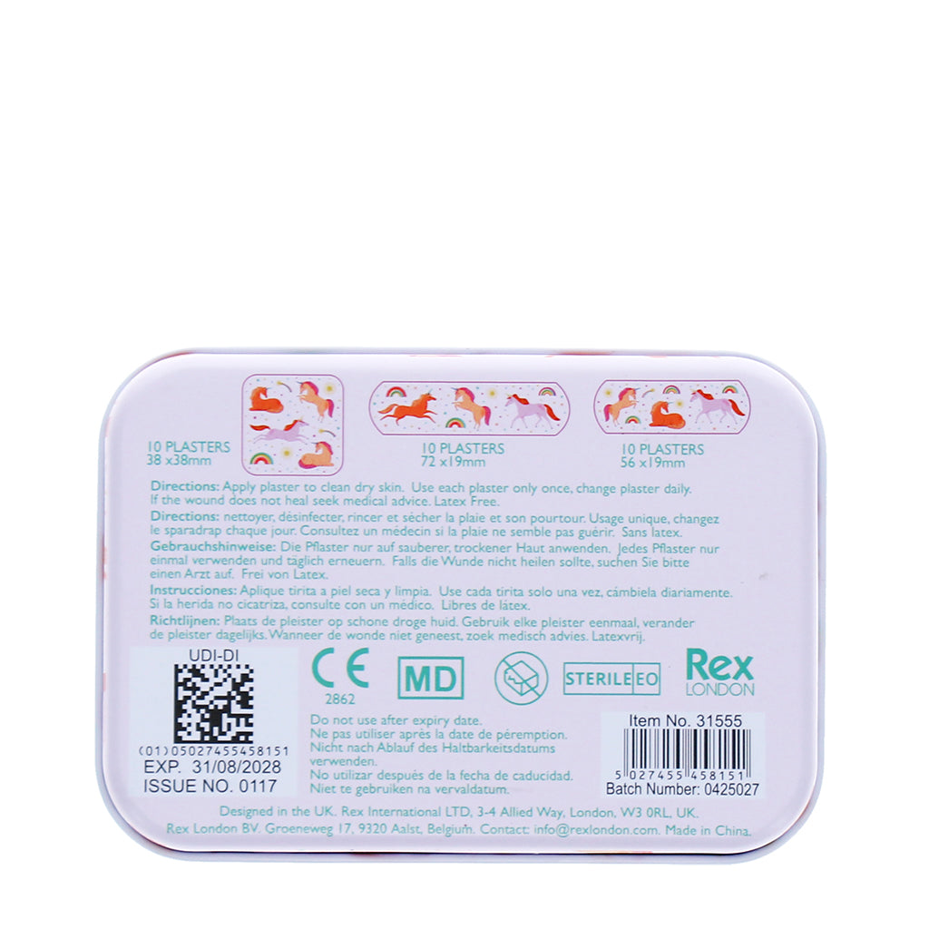 Balenie obsahuje 30 náplastí v rôznych veľkostiach, prehľadne uložených v kovovej dóze, ktorá udrží náplaste čisté a pripravené na použitie – doma alebo na cestách.