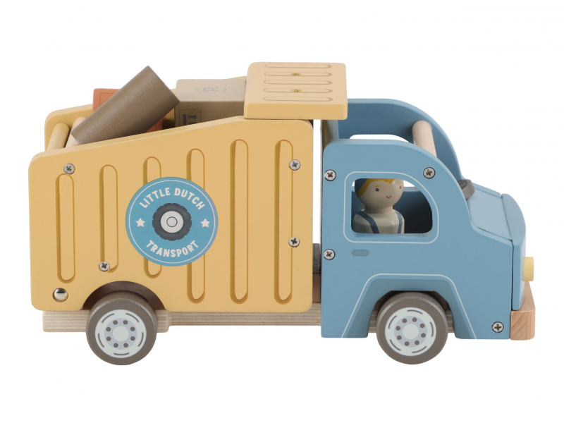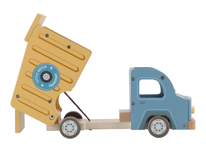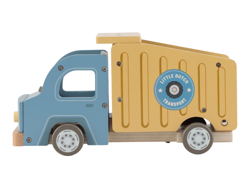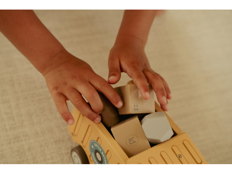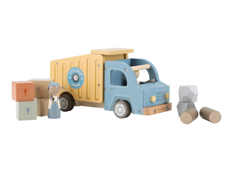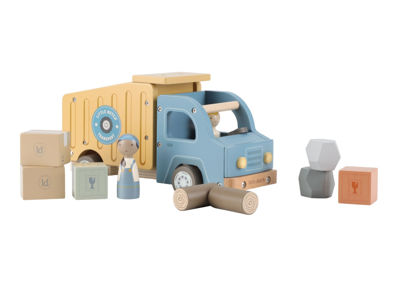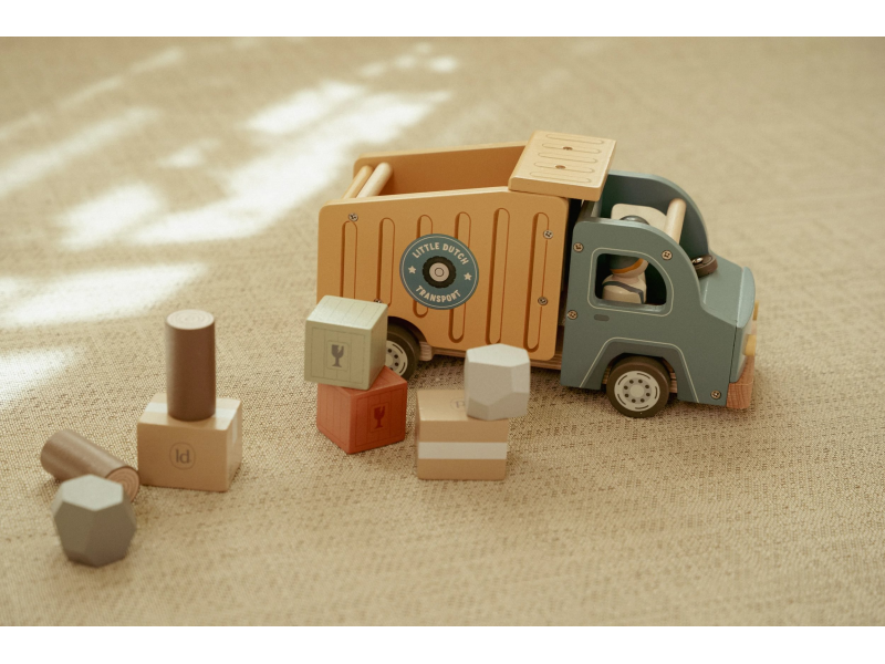 Nákladiak so sklápačkou je ideálna hračka pre malých staviteľov, ktorí chcú prevážať, vykladať a vymýšľať nové príbehy. Kvalitné drevené prevedenie s dôrazom na detail zaisťuje dlhú životnosť a hodiny kreatívnej hry. Auto má funkčnú sklápaciu korbu, vďaka ktorej deti ľahko naložia a vyložia svoj náklad. Súčasťou balenia sú dvaja vodiči a rôzne typy nákladu – klády, kamene a drevené debničky. Deti tak môžu vymýšľať stále nové príbehy, rozvíjať fantáziu a precvičovať jemnú motoriku.