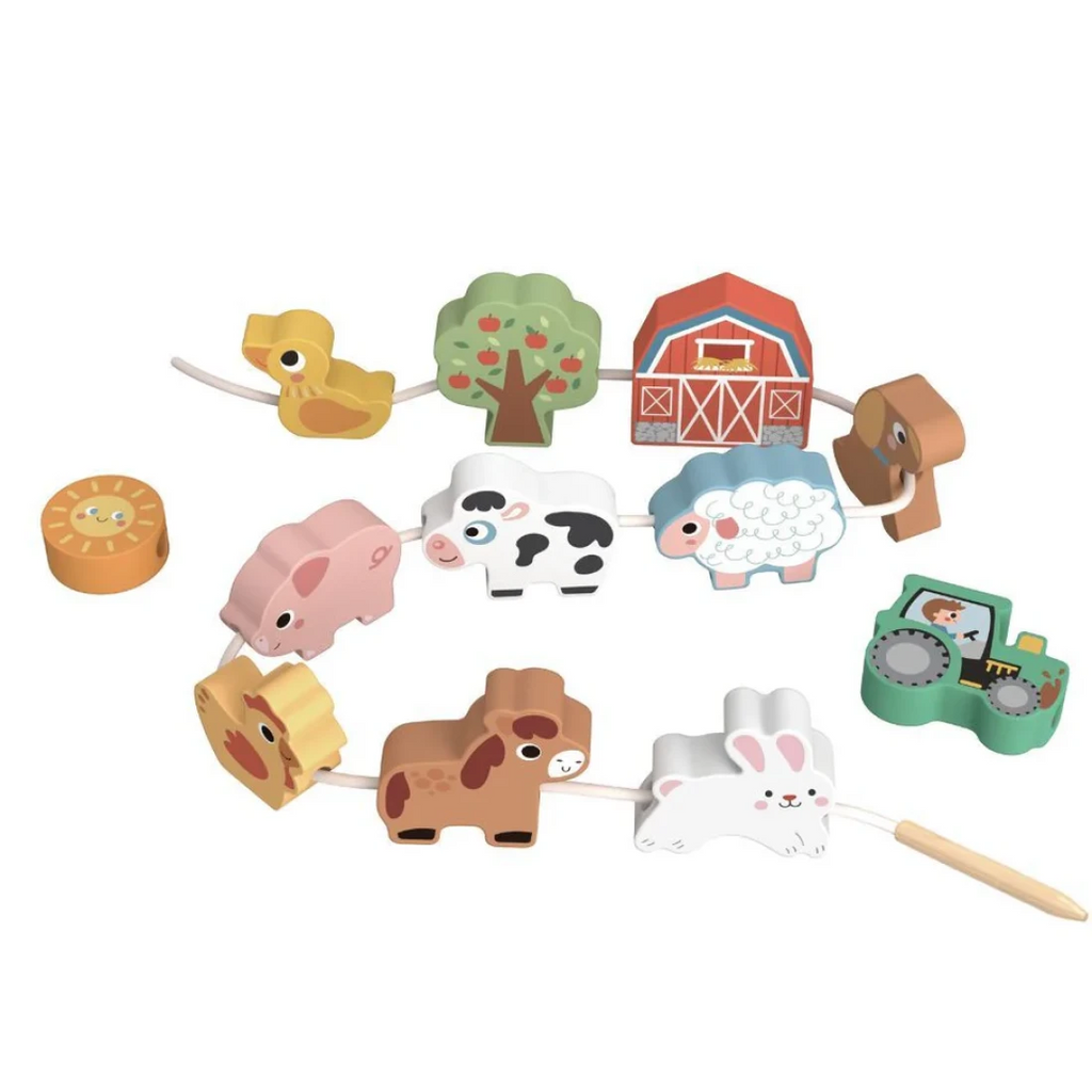 Vstúpte do sveta jemných farieb a spoznávania zvieratiek! Táto sada drevených zvieratiek na navliekanie ponúka 13 dielikov. Deti môžu navliekať, triediť tvary, pomenúvať zvieratká a zároveň trénovať jemnú motoriku a koncentráciu.