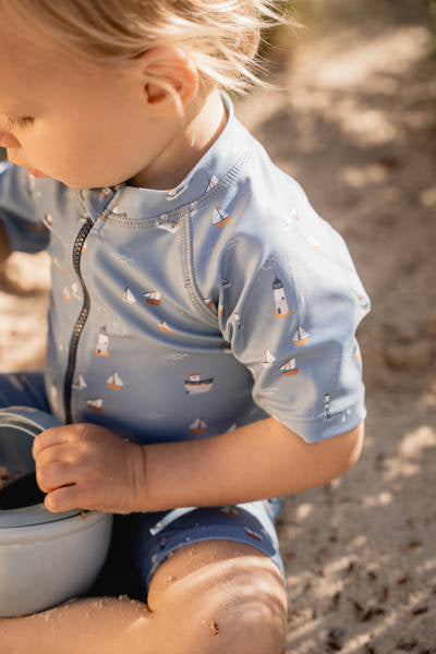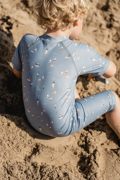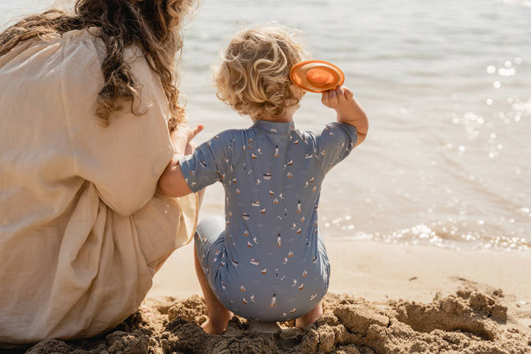 Plavky z UV ochrannej tkaniny s krásnou potlačou chránia vaše dieťa pred slnkom pri kúpaní pri mori aj doma na záhrade. Či už vaše deti milujú skákanie vo vlnách, kúpanie v bazéne alebo si rady stavajú hrady z piesku, v týchto plavkách si môžu bezstarostne užívať celý deň.