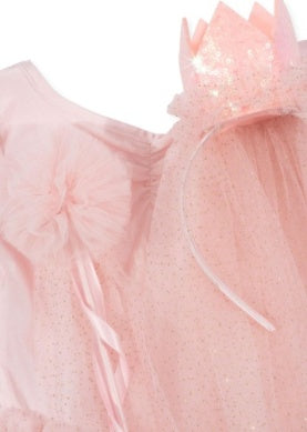 Set pre malé princezné. šaty s riasenou tylovou sukničkou, čarovná palička a korunka so závojom sú ideálnym darčekom pre malé parádnice.