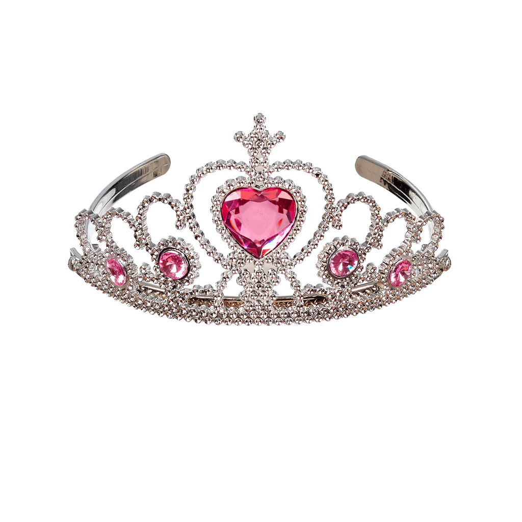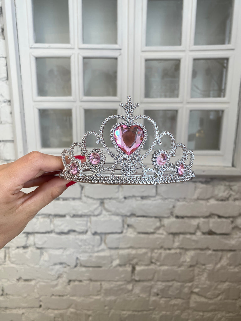 Táto čarovná korunka s veľkým ružovým srdiečkom uprostred a trblietavými kamienkami je sen každej malej princeznej! Je elegantná, ligotavá a dokonale sa hodí na kráľovský ples, narodeninovú oslavu alebo každodenné rozprávkové hranie. Krásne drží na hlavičke aj pri tanci! 👑💃