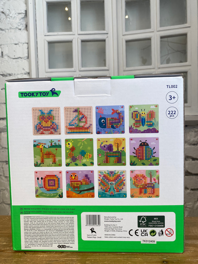 Pri tomto sa zabavia asi aj malí aj veľkí, hra nášho detstva, kedy sme za pomoci drobých "hríbikov" tvorili rôzne obrázky. Táto malá mozaika však ponúka 10 obrázkových predlôh a farebné hríbiky, ktorými si môže dieťa dotvoriť rôzne zvieratká na predlohe. Nielen že si trénuje jemnú motoriku, rozvíja detskú kreativitu, ale dieťa sa uči trpezlivosti, rozpoznáva farby a objavuje zvieratká za pomoci obrázkov.
