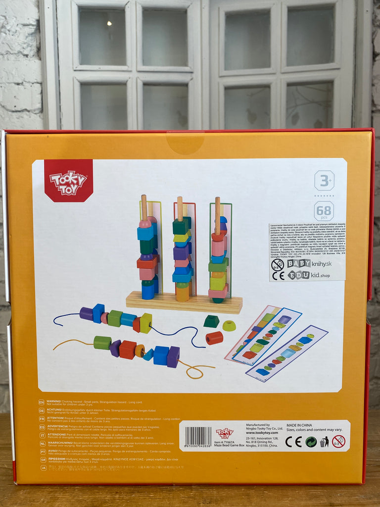 Kreatívna sada plná najrôznejších aktivít, s ktorou sa vaše deti nudiť rozhodne nebudú. Jednoduchá drevená hra potrápia nejednu hlavičku. Vďaka predlohám si deti vytvárajú najrôznejšie farebné veže podľa predlohy, ale tiež podľa vlastnej fantázie. Navliekať je ale môžu tiež na priložený povrázok. Môžu počítať jednotlivé kúsky, učí sa pomenovávať farby a tvary, triedi ich a porovnávajú. Rozvíjajú si tiež koordináciu oko-ruka a schopnosť samostatne sa hrať.