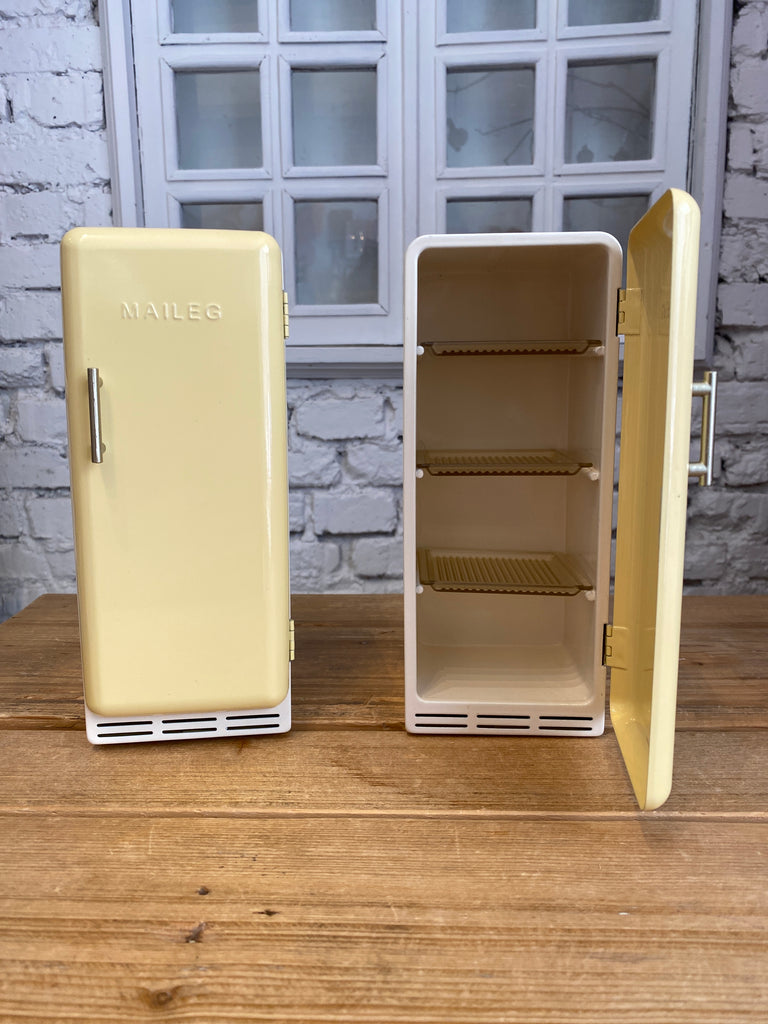Kovová chladnička, hrnček prestri sa a dobrý obedík navar sa. Pre maškrtnice ako sú myšky nemôže chýbať takýto krásny kúsok v ich domčeku. Chladnička je kovová, je dizajnová a má magnetické zatváranie. Už len ju napniť dobrôtkami z ponuky Maileg.