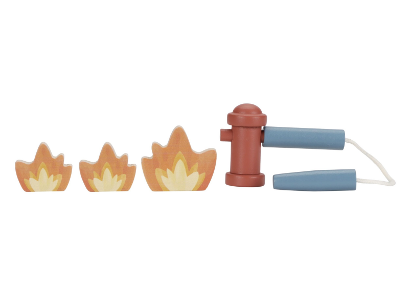 Súpravu tvorí hasičský nákladiak, štyri figúrky hasičov, plamene, hydrant, strom s mačičkou a zábrana – všetko, čo je potrebné pre napínavú záchrannú misiu.