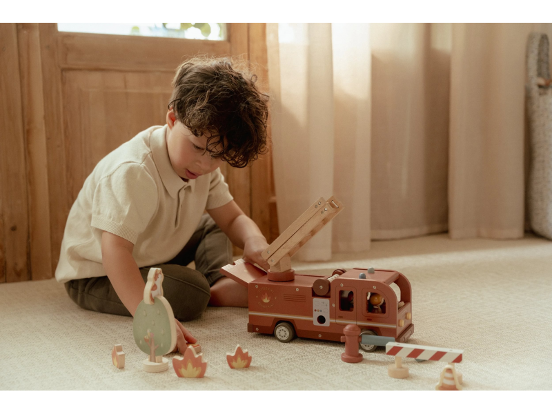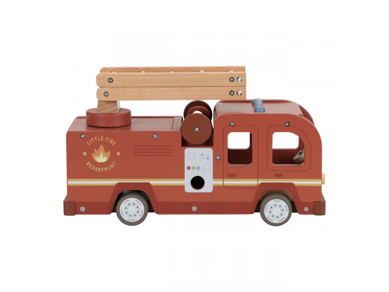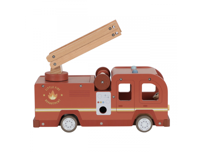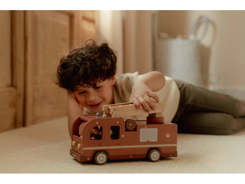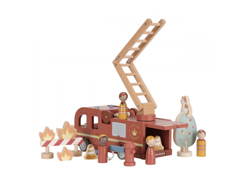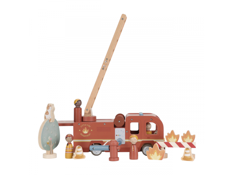 Hasičský nákladiak so štyrmi hasičmi je pripravený vyraziť do akcie! Niekedy je potrebné zachrániť mačičku zo stronu, inokedy uhasiť požiar alebo pomôcť polícii pri dopravnej nehode. Pre všetky tieto situácie je nákladiak vybavený výsuvným rebríkom a odnímateľnou hadicou, ktorú je možné pripojiť k hydrantu alebo priamo k vozidlu.