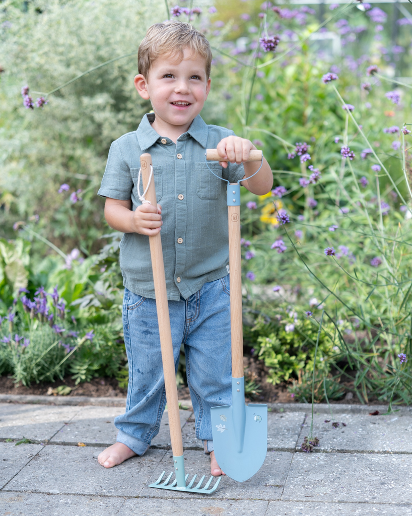 Naložiť hlinu na koliesko aj pripraviť záhon na stávkovanie bude s touto lopatou hračka! Nepostrádateľný nástroj pre malých záhradníkov a záhradníčky má pevnú drevenú rukoväť a kovovú čepeľ. Lopata s rukoväťou v hornej časti pre ľahký úchop sa bude hodiť pre prácu na záhrade aj hranie na pieskovisku.