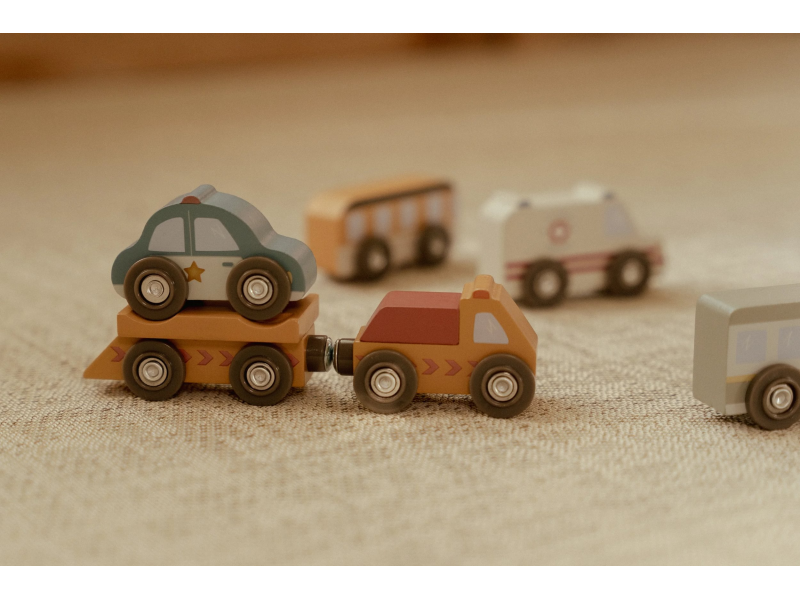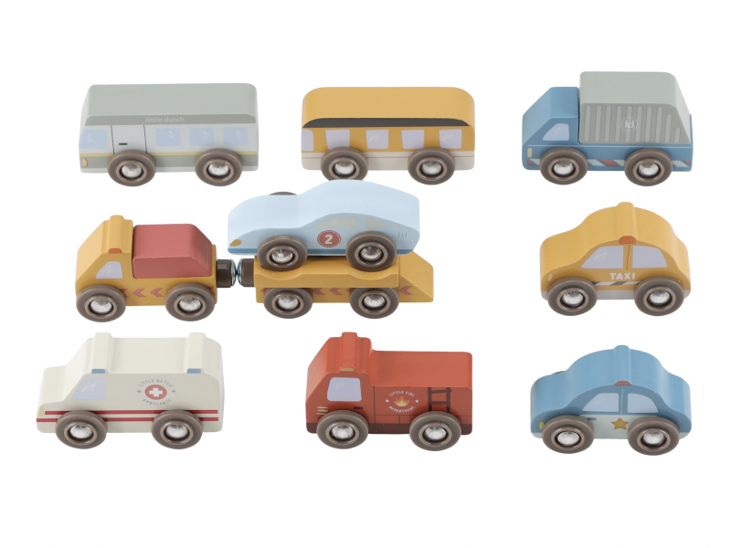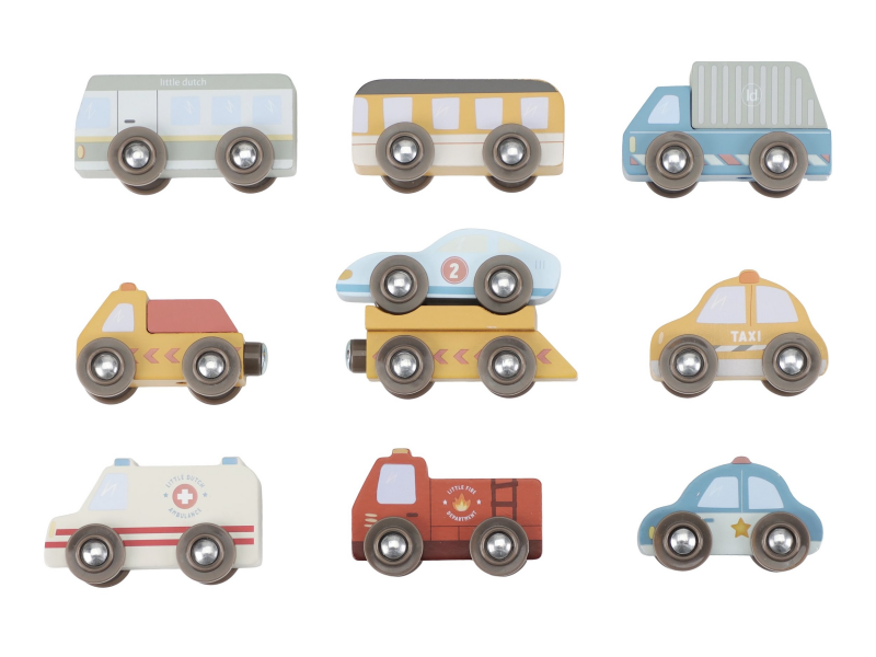 Autíčka sú kompatibilné s vláčikodráhou Little Dutch a jej rozširujúcimi sadami. Deti si tak môžu vytvoriť vlastné mesto plné akcie, príbehov a pohybu. Hra podporuje predstavivosť, jemnú motoriku a samostatné rozprávanie.