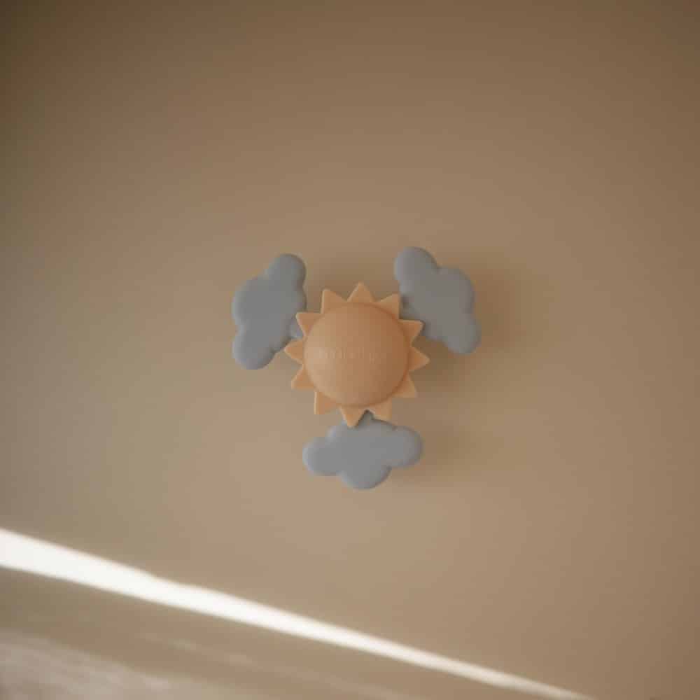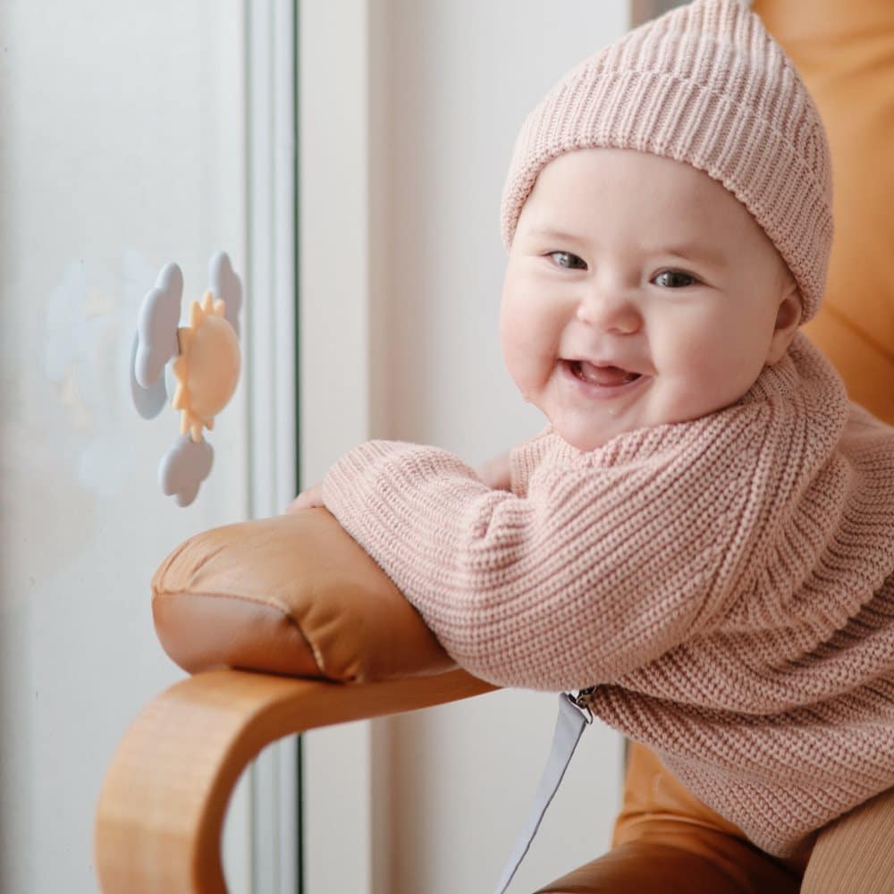 Hračka je vyrobená z plastu a potravinárskeho silikónu a je navrhnutá tak, aby deťom vytvárala zmyslové zážitky. Má tiež prísavku, ktorá zaisťuje, že hračka zostane na svojom mieste – to zabraňuje náhodným pádom a podporuje samostatnú hru. Vyskúšajte funkciu prísavky na dverách, stoličkách, vo vani atď.