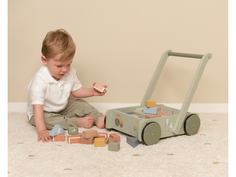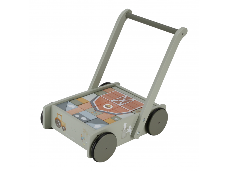 VOZÍČEK S KOCKAMI DREVENÝ FARMA