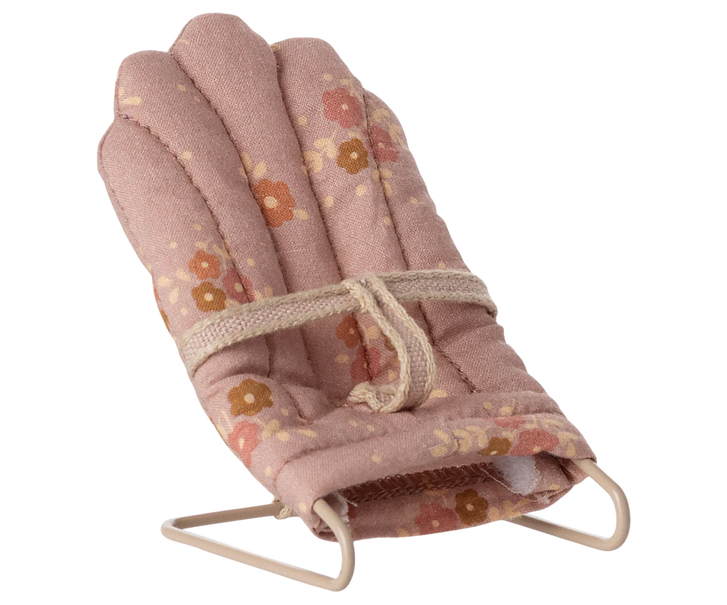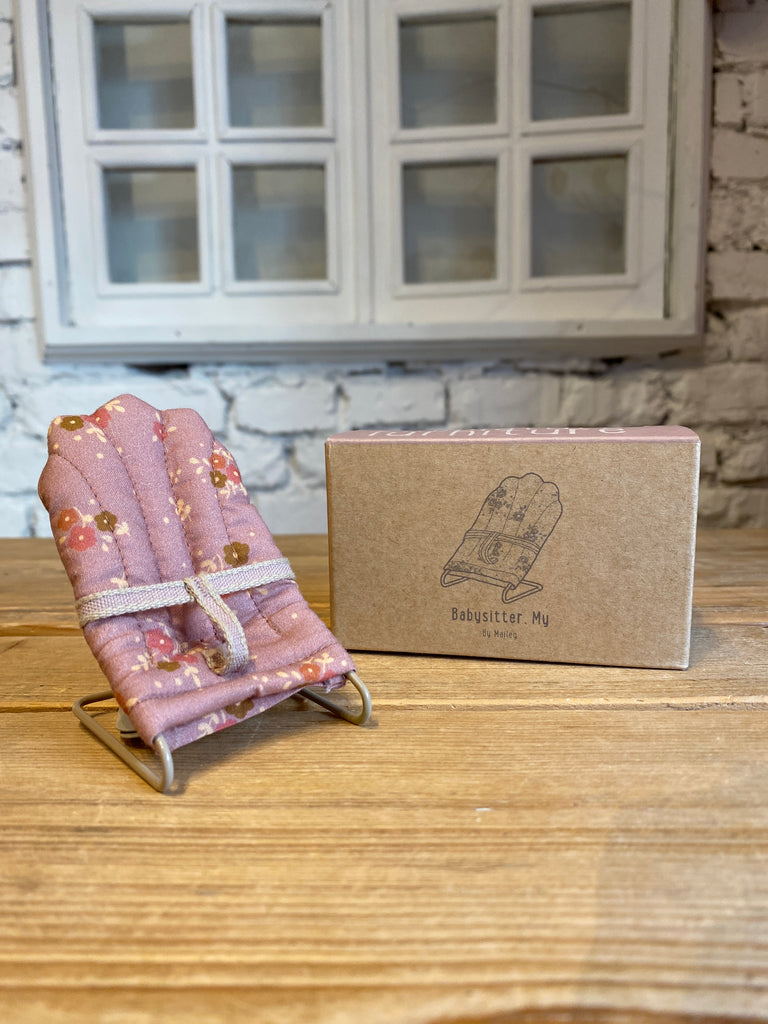 Starostlivá myška mamička, zaručne ocení baby lehátko - babysitter vďaka ktorému si môže nakŕmiť, zabaviť ale aj uspať svoje bábätko. Tento dizajnový skvost zapasuje do každého domčeka, jeho detailné prevedenie je dokonalé, kovová konštrukcia, jemný kvetinový pattern na ležadle a jemný opasok aby bábo nevypadlo. Dieťa si veľmi dobre precvičí jemnú motoriku pri ukladaní bábätka. Využijú ho aj zajkovia vo veľkosti micro, ale aj myšky dvojičky. Lehátko sa predáva samostatne.