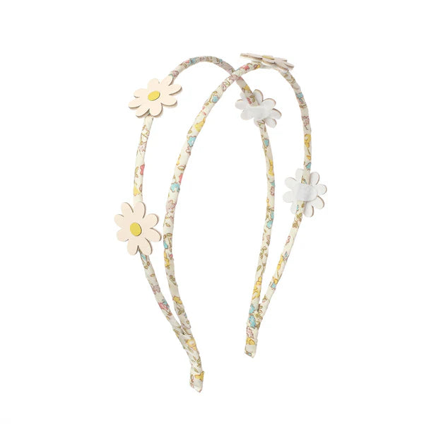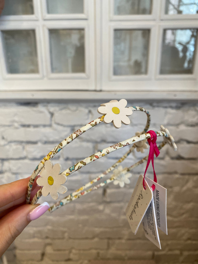 Naša dvojitá čelenka s krásnymi margarétkami obsahuje dva pásy ozdobené jemnými kvetmi vo forme margarétok, ktoré sú ideálne na letné dobrodružstvá! Čelenka je omotaná stuhou s látkovými okvetnými lístkami a je navrhnutá tak, aby pohodlne sedela na malú detskú hlavičku.