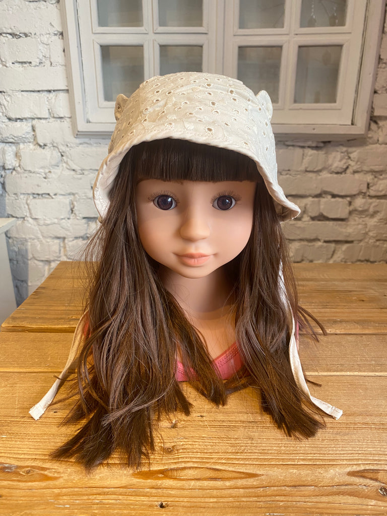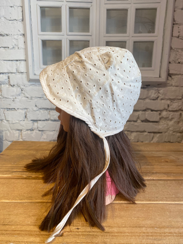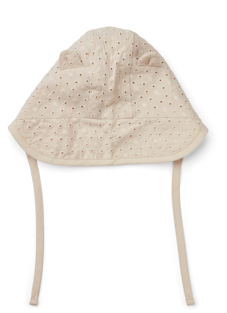 Tento roztomilý klobúčik je ako strážca očiek – široký okraj drží slniečko mimo očí vášho pokladu, zatiaľ čo jemné stuhy ho udržia na mieste aj pri najdivokejších objavoch – či už to bude pokus ochutnať piesok, alebo prvý tanček na lúke. Klobúčik je podšitý, vrchnú časť tvorí madeira. Vyrobený zo 100 % organickej bavlny, ktorá dýcha a rýchlo schne -zabezpečuje pocit sviežosti bez potenia.