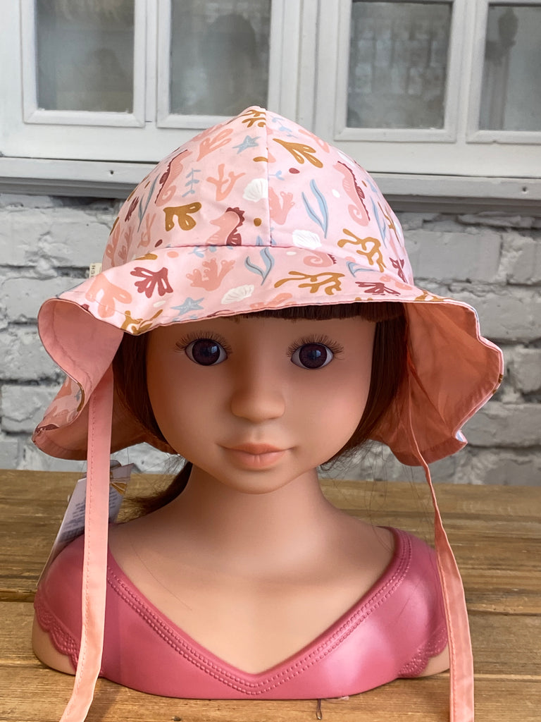 Obojstranný klobúčik z UV ochrannej tkaniny s krásnou potlačou chráni vaše dieťa pred slnkom pri kúpaní pri mori aj doma na záhrade. Či už vaše deti milujú skákanie vo vlnách, kúpanie v bazéne alebo si rady stavajú hrady z piesku, s týmto klobúčikom si môžu bezstarostne užívať celý deň. Zaväzovacie šnúrky pomáhajú udržať klobúčik na hlave počas kúpania aj hrania. Obojstranné prevedenie ponúka na výber dva designy kĺbov - jednofarebný a s potlačou.