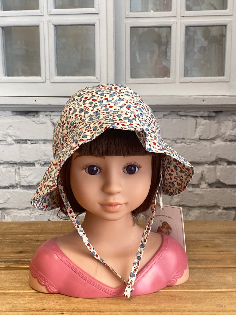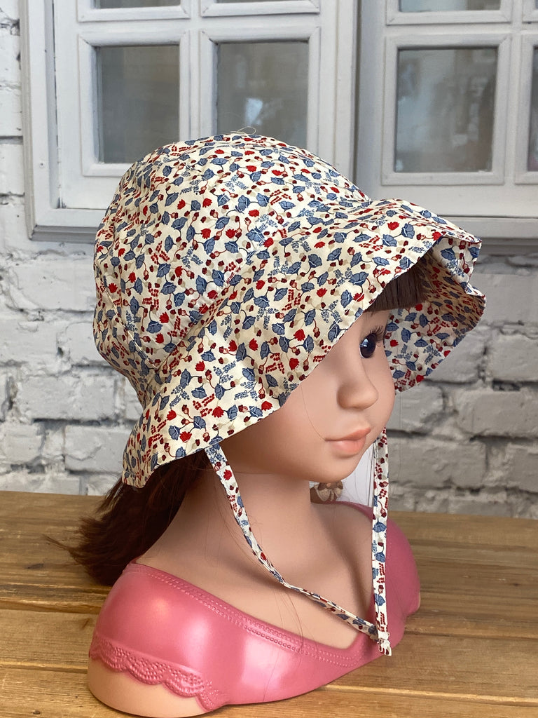 Klobúčik s krásnym vzorom, volánom okolo tváre vyrobený zo 100% organickej bavlny.