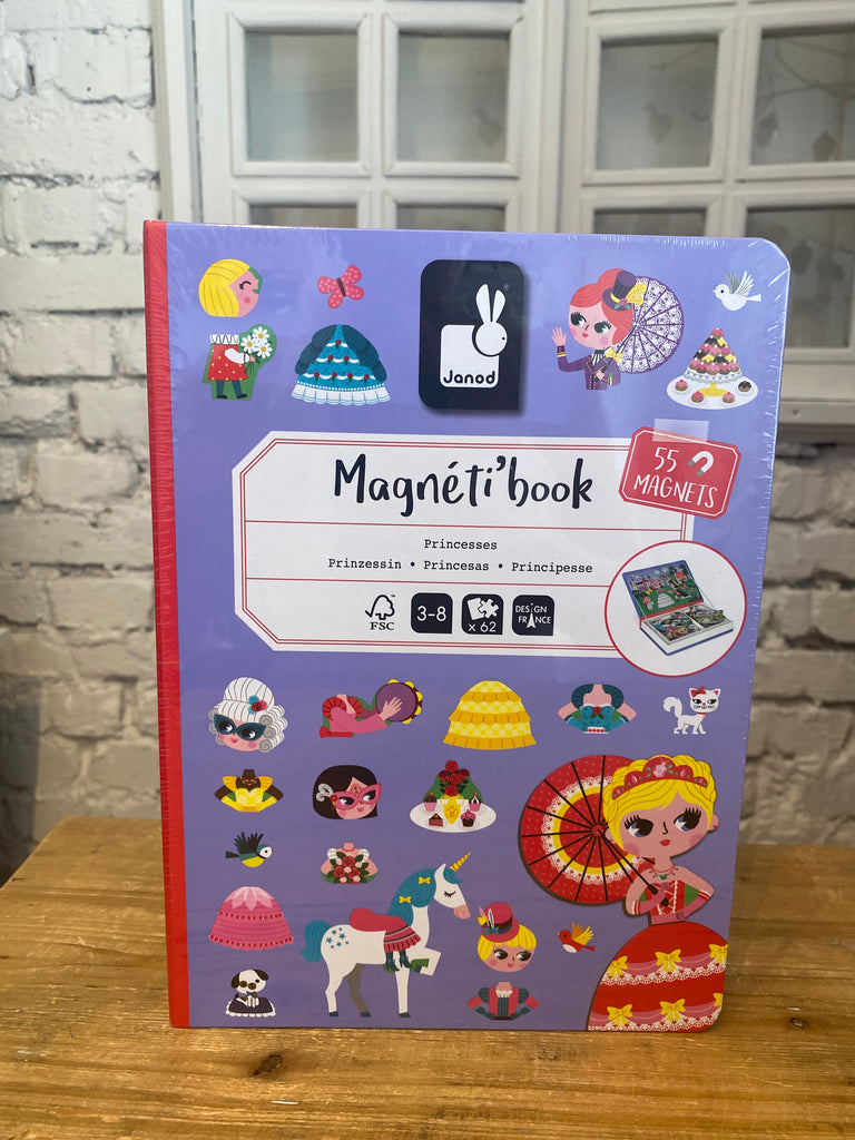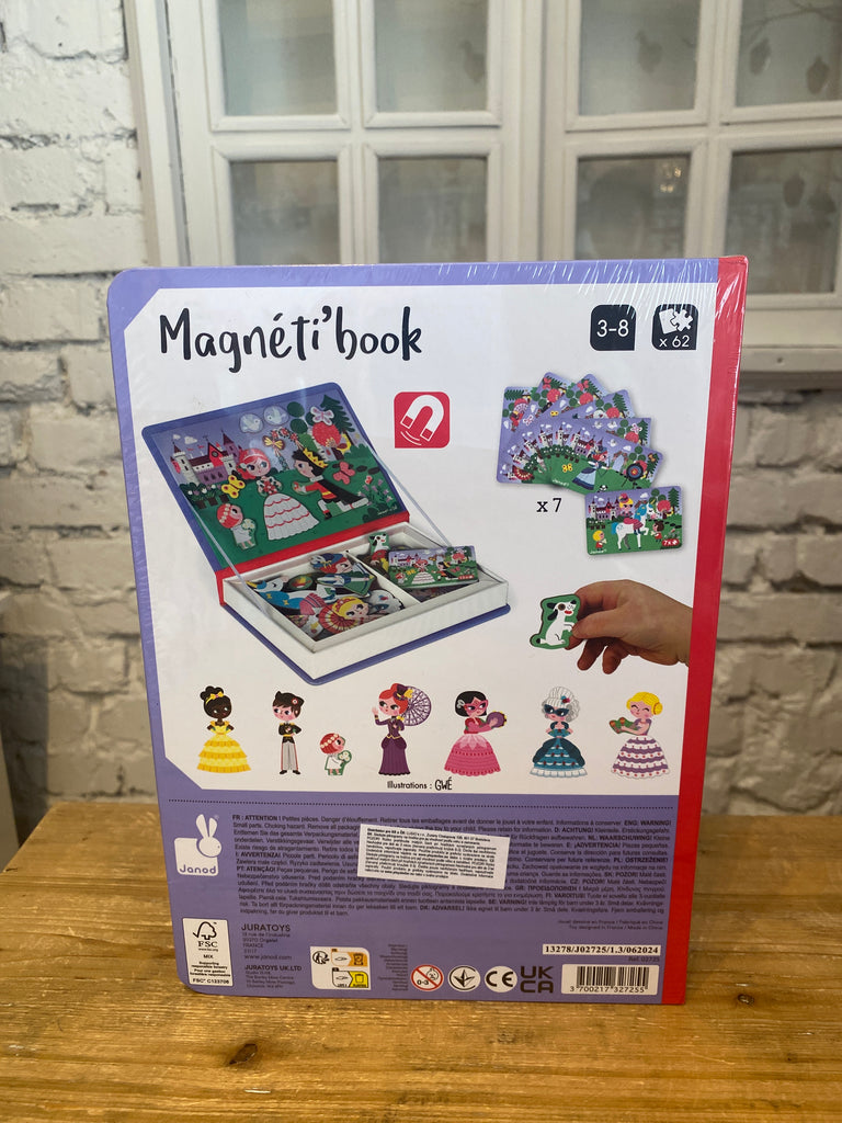 Magnetická vzdelávacia hra v kartóne na tému princeznej. Skladá sa z 55 magnetov a 7 kariet. Akonáhle je kniha otvorená, cieľom je urobiť na tabuli rovnakú scénu, ako je vyznačená na karte vďaka magnetom.