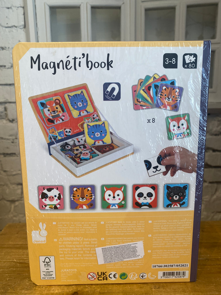 Magnetické knihy sú jeden z najobľúbenejších produktov Janod Magnetická skladačka v tvare knihy má pestrofarebný motív, ktorý detí zaujme. Zabavte Vaše deti skladaním obrázkov z magnetických dielikov podľa predlohy. Balenie obsahuje Obsahuje 72 magnetiek a 8 kariet pre vytvorenie tváre zábavných zvieratiek. Praktické balenie zabezpečí, že sa hračka dá pohodlne prenášať, deti sa s ňou zabavia nielen doma, ale aj na dlhých cestách. Magnetické kniha pre deti je krásna nadčasová hračka pre každé dieťa, ktorá sa bude páčiť niekoľkým generáciám, vyrobená z kvalitných materiálov a zdravotne neškodných farieb.