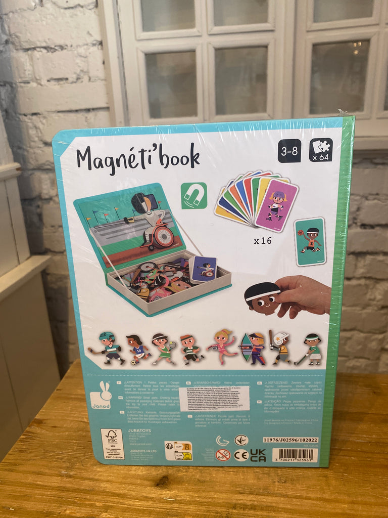 Nech žije šport! S touto farebnou magnetickou hračkou objaví vaše dieťa 16 športov s možnosťou vysnívať si mnohé ďalšie! Skladá sa z magnetickej tabule, 48 magnetov a 16 kariet reprezentujúcich známe športy. Malí aj starí sa budú baviť reprodukovaním šablón a ich miešaním, aby vytvorili tú najexcentrickejšiu zmes športov.