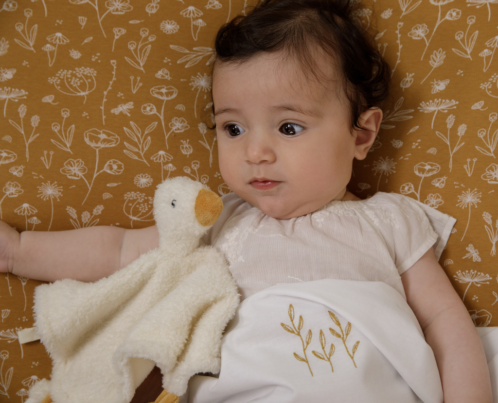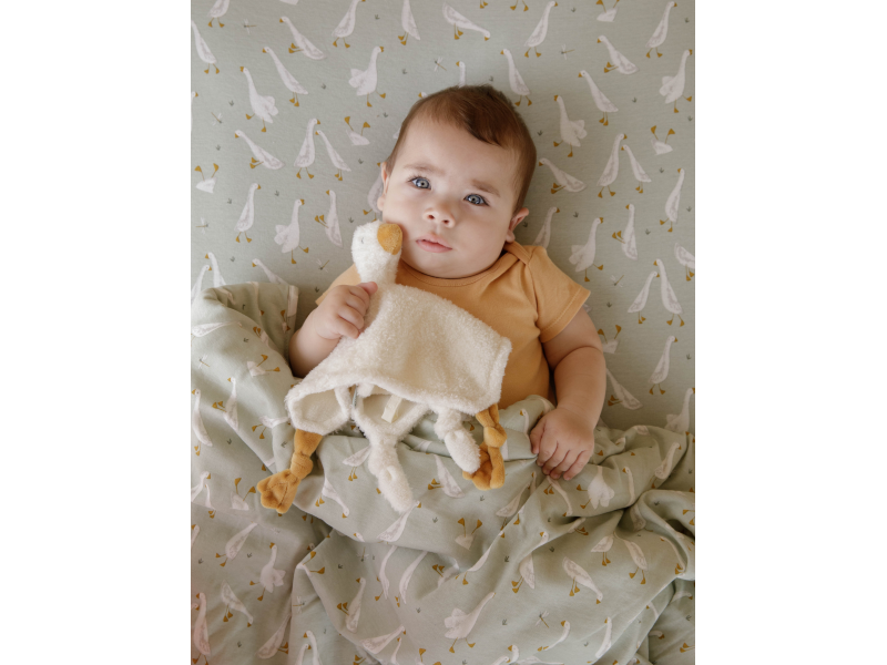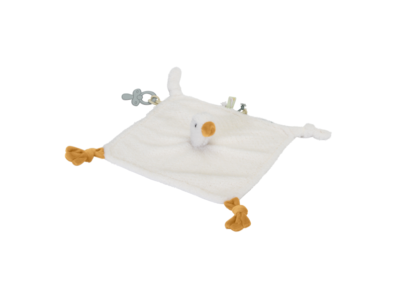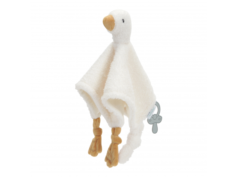 Plyšový maznáčik v podobe rozkošnej húsky s úchytom pre cumlík láka na hranie i maznanie. Maznáčik je vyrobený z veľmi jemného a príjemného materiálu a je ideálny ako spoločník do postieľky pre pokojné zaspávanie.